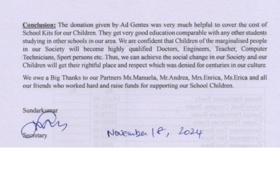 Da questa necessità è nato il progetto “Kit Scolatici” che si era posto l’obiettivo di coprire l’importo per le rette scolastiche dell’anno accademico 2023/2024 per i figli degli artigiani e per i bambini provenienti dalle famiglie che non sono in grado di provvedere in maniera autonoma alla copertura della retta.